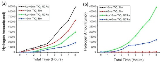 - Wu, B.-H.; Liu, W.-T.; Chen, T.-Y.; Perng, T.-P.; Huang, J.-H.; Chen, L.-J. Plasmon-enhanced photocatalytic hydrogen production on Au/TiO2 hybrid nanocrystal arrays. Nano Energy 2016, 27, 412–419. [Google Scholar] [CrossRef]