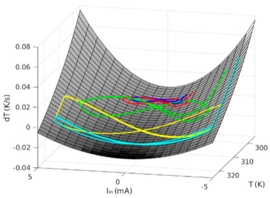 We have added a term to account for the heat transfer from the CF to the surrounding insulator to Equation (3), see Figure 6. The heat losses are included by means of the heat transfer coefficient () [31,38,79,85], see Equation (6):