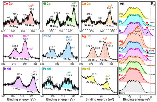 3 nanosheet. The Rh, Pd, Ir, and Pt showed much higher (with lowering of onset temperatures between 156 °C and 261 °C) CO oxidation activity in the first and second runs. Conclusively, the CO oxidation activity showed the order of Ni < Co < Au < Cu < Ag < Pd < Pt < Ir < Rh in the first run, and Ni < Au < Ag < Cu < Co < Ir < Pt ≈ Pd < Rh in the second run.