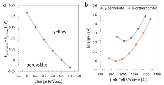 3.3. Role of Electron Concentration and Volume Expansion in the Stabilization of the Perovskite Phase of CsPbI3