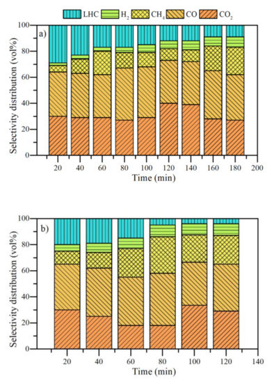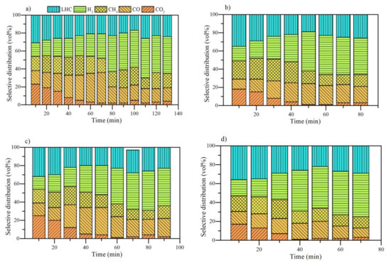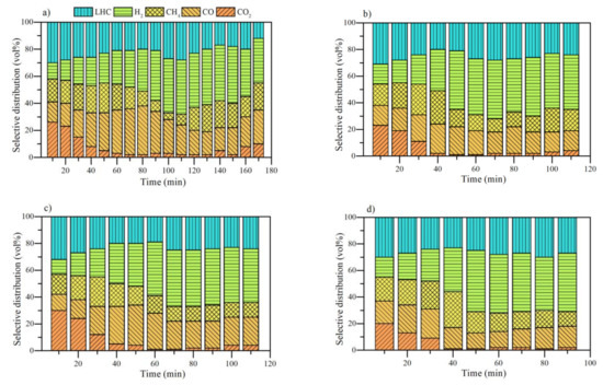 3.4. Analysis of Gaseous Profiles during Steam Gasification