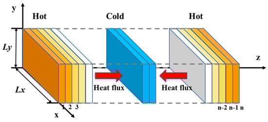 where κ is the exchange rate of hot particles, vc is the exchange rate of cold particles, LxLy is the area where heat transfer occurs, and is the temperature gradient in the z direction.