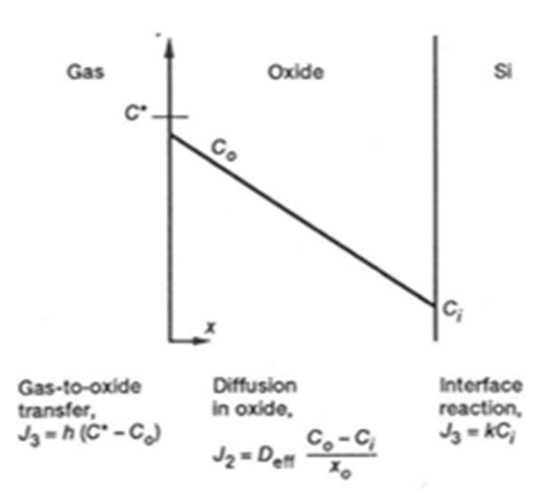 - If the oxide layer is thin enough, the Si atoms can diffuse through it and instantly react with the oxidant atmosphere,