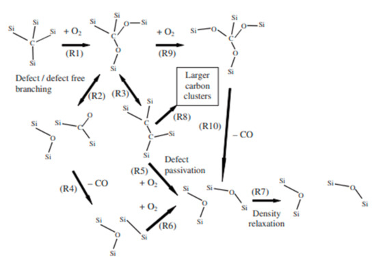 - The Si-O-Si bridges network provides defects (as lattice vacancies) through which structural self-diffusion occurs with breaking and reforming of the bonds.