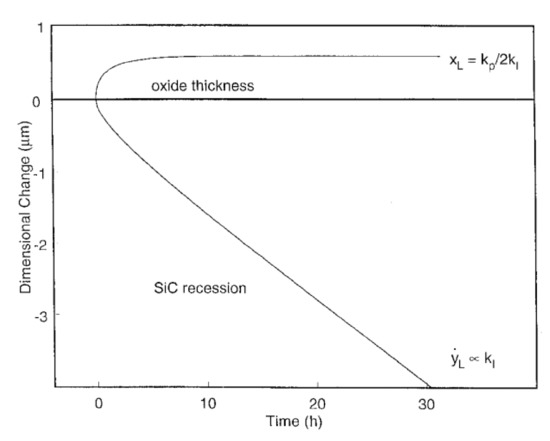 - At short oxidation times, a gas diffusion mechanism is dominant (parabolic regime) whereas at long times, a surface-reaction mechanism is dominant (linear regime),