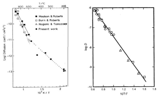 - For the gas diffusion mechanism, temperature plays an important role: at low temperatures, the oxygen diffusion is molecular whereas above 1350 °C, the diffusing species are ionic oxygen,