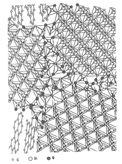 | Observations | Deposition of carbon and silica, according to Yoshimura | Formation of a carbon layer and dissolution of silica, according to Gogotsi | Oxidation of carbon and dissolution of silica, according to Hirayama |