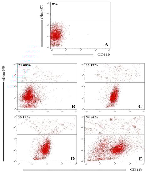 - Christensen, J.E.; Andreasen, S.Ø.; Christensen, J.P.; Thomsen, A.R. CD11b expression as a marker to distinguish between recently activated effector CD8+ T cells and memory cells. Int. Immunol. 2001, 13, 593–600. [Google Scholar] [CrossRef] [PubMed]