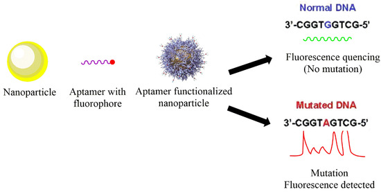 Nanotechnology holds promising results in identifying SNPs by various principles, such as partial aggregation upon recognizing target DNA. Moreover, the signal amplification can be solely achieved using optical nanocarriers that may further be improved using hybrid techniques, such as merging the sensing methods with nanotechnology. Au, silica, Ag, graphene, and quantum-based nanostructures have been widely studied in diagnostic applications in the past. Hence, owing to their positive outcomes, they are also being explored in recognition of SNPs. A general diagram representing the basic idea of SNP detection is shown in Figure 1.