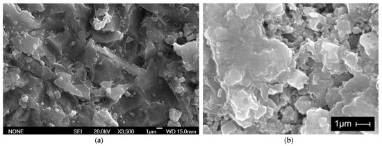 Figure 16a shows a SEM image of the concrete obtained with metakaolin, nanosilica and silica fume (mix #9), a dense and closed structure of hydrated products can be observed. In addition, the nanoaddition may be observed on the cement hydrated products—more specifically, C-S-H gel. The image on the right shows, for comparison, the hydrated cement without nanoadditions.