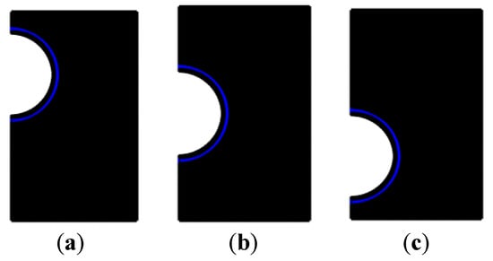 The computation grids ((a) top position, (b) central position, and (c) bottom position).