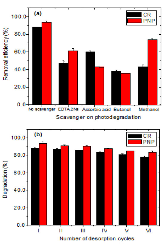 5.3. Photocatalytic Degradation of Congo Red and p-Nitrophenol in the Presence of Pb(II) Ions