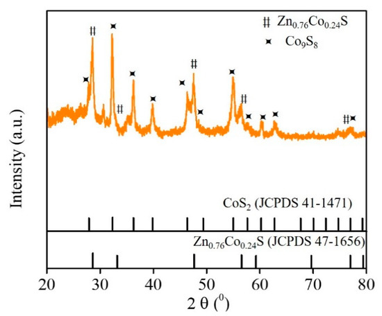High specificity, reliability, and sensitivity of tumor biomarker sensing platforms are expected to play a significant supporting role in enabling personalized medicine and point-of-care testing for future drug development and clinical cancer diagnostics. Biomarkers, such as carbohydrate antigen 19-9 (CA19-9), consisting of the macromolecule glycoprotein exist in tumors, and have been shown to be strongly associated with malignant tumors (mainly pancreatic, colorectal, liver, gastric, and ovarian). Typically, the CA19-9 concentrations are lower than 37 U·mL−1 for normal healthy people; a slight increase of CA19-9 concentration may cause a significant increase in the relative risk of cancer incidence and development [1]. Over recent decades, many research groups have developed reliable methods for CA19-9 biomarker sensing platforms, including enzyme-linked immunosorbent assays (ELISA) [2], surface-enhanced Raman scattering spectroscopy (SERS) [3], chemiluminescence [4], electrochemiluminescence [5], and electrochemical immunosensors [6], with a positive influence on diagnostic values of CA19-9 for early cancer diagnosis and surgical prediction. Among them, electrochemical immunosensor consisting of biological molecules and electrochemical active nanocomposites garnered considerable attention owing to their advantages of simple operation procedure, cost-effective production, and high sensitivity. Currently, electrochemical immunosensors can mainly be classified into non-labeled (label-free) and labeled (sandwich-type) immunosensors. In contrast to the non-labeled form, labeled immunosensors often require time-consuming, complicated, and expensive processes to cause an increase in the denaturation of biomarkers that lead to unfavorable effectiveness. For this reason, it is of great significance to develop a label-free electrochemical immunosensor to provide remarkable biomarker sensing. The key to developing label-free electrochemical immunosensors is to create a sensing interface composed of electrochemically active sites and good electrically conducting substrates. It has been demonstrated that the fabrication of electrochemical sensors using transition metal sulfide nanomaterials could possess excellent catalytic ability originating from their multiple oxidation states and unique hierarchical structure. Hence, they are ideally suited to the use of transition metal sulfide nanomaterials as a potential electrode material for label-free electrochemical immunosensors. Recent investigations have shown that transition metal sulfide nanomaterials, such as MoS2 [7], CoS2 [8], CuS [9], and NiCo2S4 [10], were suitable for preparing electrochemical immunosensors that displayed the superior sensing performance. Such an effect was acknowledged to be partly caused by the lower electronegativity of S, which exhibited remarkable electrochemical performance [11,12]. Considering the attractive properties of graphene, greatly enhanced electrocatalytic sensing can be achieved by integrating graphene with transition metal sulfide nanomaterials. The unique 2D graphene nanostructure with plenty of binding sites and excellent biocompatibility provides an excellent platform to support the growth of transition metal sulfide nanomaterials to form transition metal sulfide/graphene nanocomposites and tune the electrocatalytic sensing properties. Kubendhiran and Wang et al. revealed that the existence of unique 2D graphene nanostructures could exhibit remarkable electrochemical catalytic activity because graphene materials could expose more edge sites that lead to faster growth of transition metal sulfide materials to form transition metal sulfide/graphene hybrids and further deliver better electrochemical performance in biomarker detection [13,14]. The proposed transition metal sulfide/graphene nanocomposites have higher electrode/electrolyte contact areas to provide more electroactive sites and effectively facilitate the electronic/ionic transport kinetics. This could be built upon to gain a great deal of attention in the development of electrochemical immunosensors for the identification of additional cancer-specific tumor biomarkers and provide preferred approaches for early diagnosis and further prognosis guidance. In this work, the binary transition metal sulfide Zn-Co-S/graphene nanocomposites were synthesized through a one-step hydrothermal method. A graphene supported by Zn-Co-S dot-like nanoparticles serving as electroactive sites for the electrochemical reactions is a potentially promising candidate for future electrochemical immunosensors.