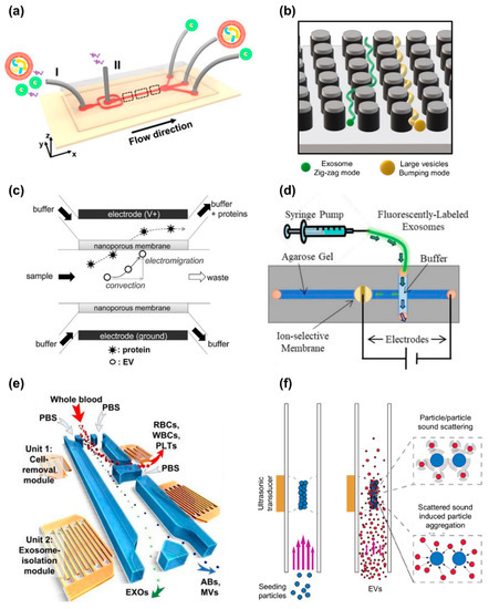 - Wu, M.; Ouyang, Y.; Wang, Z.; Zhang, R.; Huang, P.H.; Chen, C.; Li, H.; Li, P.; Quinn, D.; Dao, M.; et al. Isolation of exosomes from whole blood by integrating acoustics and microfluidics. Proc. Natl. Acad. Sci. USA 2017, 114, 10584–10589. [Google Scholar] [CrossRef] [PubMed]