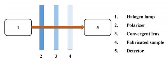 An a-Si film is grown on the SiO2 substrate by Plasma-Enhanced Chemical Vapor Deposition (PECVD). The thickness of the SiO2 substrate is 1 mm. The cuboid-bar nanostructure EIT metasurface is fabricated by electron-beam lithography and deep silicon etching technique. The transmission spectra of the fabricated cuboid-bar nanostructure EIT metasurface are measured by a convergent spectrometer. As shown by Figure 2, a polarizer is added in the convergent spectrometer to ensure that the incident light is polarized along the short axis of the bar in the bidirectional EIT metasurface.