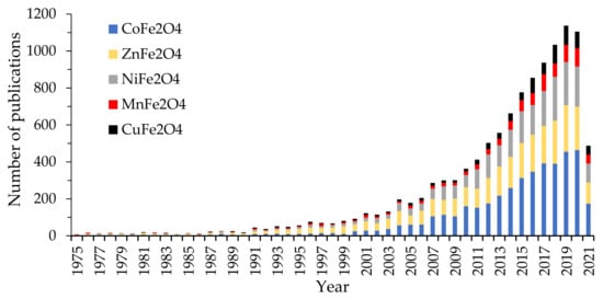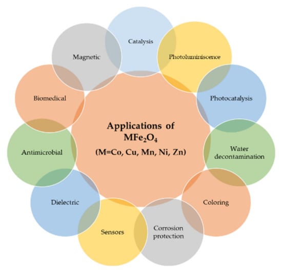 APA StyleDippong, T., Levei, E. A., & Cadar, O. (2021). Recent Advances in Synthesis and Applications of MFe2O4 (M = Co, Cu, Mn, Ni, Zn) Nanoparticles. Nanomaterials, 11(6), 1560. https://doi.org/10.3390/nano11061560