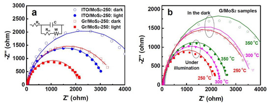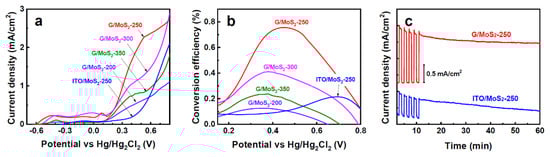 - Carraro, F.; Calvillo, L.; Cattelan, M.; Favaro, M.; Righetto, M.; Nappini, S.; Píš, I.; Celorrio, V.; Fermín, D.J.; Martucci, A.; et al. Fast one-pot synthesis of MoS2/crumpled graphene p–n nanonjunctions for enhanced photoelectrochemical hydrogen production. ACS Appl. Mater. Interfaces 2015, 7, 25685–25692. [Google Scholar] [CrossRef]