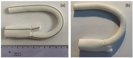 The knitted implants vascular prosthesis Dallon® and Dallon® H were used for research. The Dallon® H knitted vascular prosthesis double velour is characterized by a hydrophilic surface and made of non-resorbable polyester (poly-(ethylene terephalate)) yarn [14]. Conversely, the Dallon® prosthesis is built by hydrophobic polyester (poly-(ethylene terephalate)) yarn. Both materials have been manufactured by TRICOMED SA, Lodz, Poland, and were CE-signed. Vascular prosthesis Dallon® and Dallon® H are presented in Figure 1.