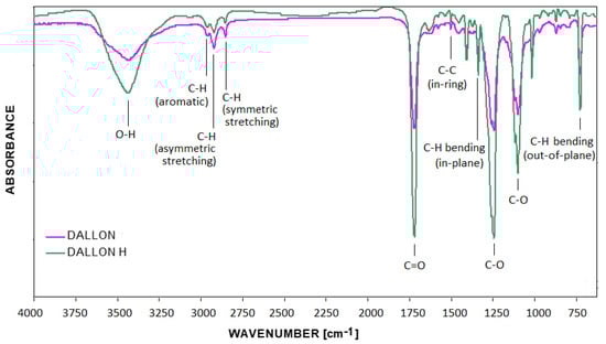 FTIR spectra of Dallon® and Dallon® H vascular prostheses made of un-modified polyester poly (ethylene terephalate) yarn.
