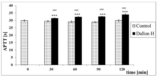 Activated partial thromboplastin time (APTT). *** p < 0.001 to the control, ### p < 0.001 to the primary value.