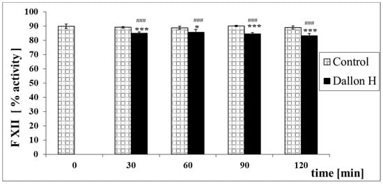 Factor XII (FXII) activity. * p < 0.05, *** p < 0.001 to the control group. ### p < 0.001 to the primary value.