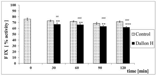 Factor IX (FIX) activity p < 0.01, ** p < 0.01, *** p < 0.001 to the control group; ## p < 0.01, ### p < 0.001 to the primary value.