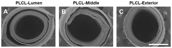 The aforementioned three multi-layered vascular grafts will be referred to as PLCL-Lumen, PLCL-Exterior, and PLCL-Middle, respectively.
