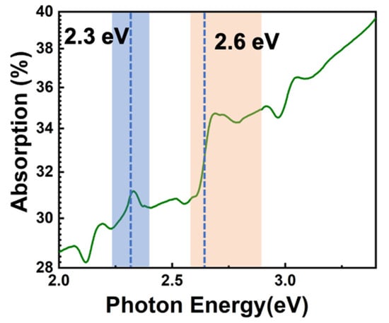 Absorption spectrum of perovskite embedding in mesopores as a function of conversion of photon energy. Working bands were labeled at 2.3 and 2.6 eV, respectively.