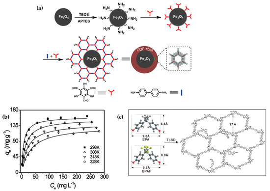 - Li, Y.; Yang, C.X.; Yan, X.P. Controllable preparation of core-shell magnetic covalent-organic framework nanospheres for efficient adsorption and removal of bisphenols in aqueous solution. Chem. Commun. 2017, 53, 2511–2514. [Google Scholar] [CrossRef]