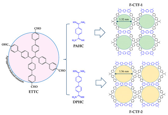 - Tang, Y.; Huang, H.; Xue, W.; Chang, Y.; Li, Y.; Guo, X.; Zhong, C. Rigidifying induced fluorescence enhancement in 2D porous covalent triazine framework nanosheets for the simultaneously luminous detection and adsorption removal of antibiotics. Chem. Eng. J. 2020, 384, 123382–123391. [Google Scholar] [CrossRef]
