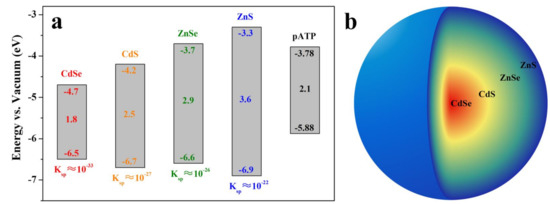 - The prepared CdZnSeS-pATP QDs have a CdSe and CdS core, ZnSe middle shell, and ZnS outer shell. The alloy structure of CdZnSeS QDs could eliminate lattice mismatch to acquire high fluorescence quantum efficiency (88.9% for CdZnSeS-OA).