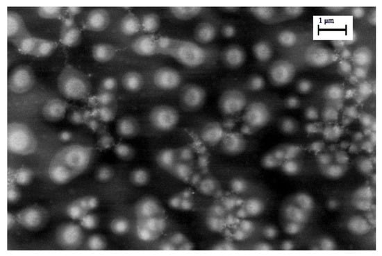 Morphology of AgNPs@11MUA after addition of 7.5 µM of Ni2+. Operative condition: 7.00 kV, WD = 1.4 mm and Mag = 19.17 kX.