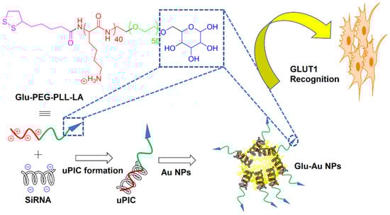 - Yi, Y.; Kim, H.J.; Zheng, M.; Mi, P.; Naito, M.; Kim, B.S.; Min, H.S.; Hayashi, K.; Perche, F.; Toh, K. Glucose-linked sub-50-nm unimer polyion complex-assembled gold nanoparticles for targeted siRNA delivery to glucose transporter 1-overexpressing breast cancer stem-like cells. J. Control. Release 2019, 295, 268–277. [Google Scholar] [CrossRef]