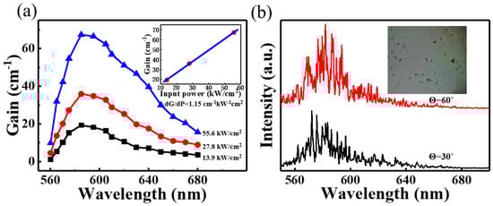 - Han, Z.; Ni, Y.; Ren, J.; Zhang, W.; Wang, Y.; Xie, Z.; Zhou, S.; Yu, S.F. Highly Efficient and Ultra-Narrow Bandwidth Orange Emissive Carbon Dots for Microcavity Lasers. Nanoscale 2019, 11, 11577–11583. [Google Scholar] [CrossRef] [PubMed]
