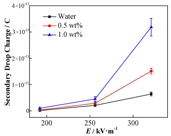Effects of electric field strength and NP concentration on secondary droplet charge.