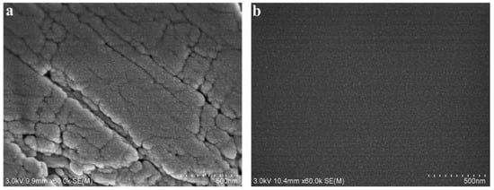 SEM images of (a) original water-wet calcite and (b) modified oil-wet calcite.
