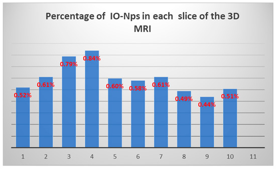 Percentage of IO-NPs of 10 slices from 3D MRI image.