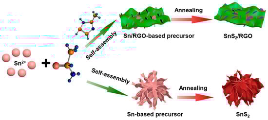 Schematic illustration of the formation process of pure SnS2, and SnS2/RGO.
