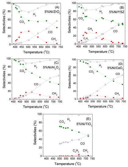 - Matsumura, Y.; Nakamori, T. Steam reforming of methane over nickel catalysts at low reaction temperature. Appl. Catal. A Gen. 2004, 258, 107–114. [Google Scholar] [CrossRef]