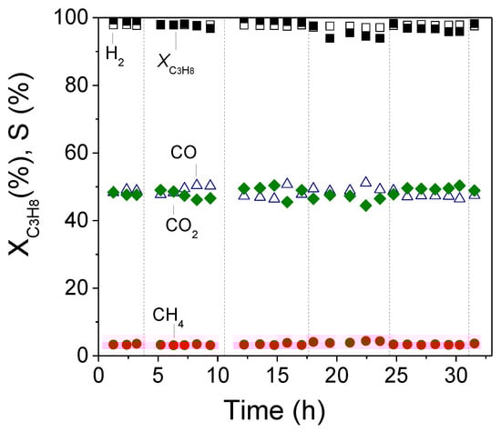 - Kokka, A.; Katsoni, A.; Yentekakis, I.V.; Panagiotopoulou, P. Hydrogen production via steam reforming of propane over supported metal catalysts. Int. J. Hydrogen Energy 2020. [Google Scholar] [CrossRef]