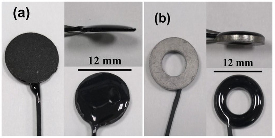 Photos of the (a) C/Ag/AgCl and (b) sintered Ag/AgCl electrodes.
