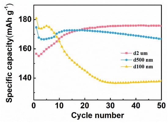 Specific capacity of three C/Ag/AgCl electrodes with different sizes of Ag powders.