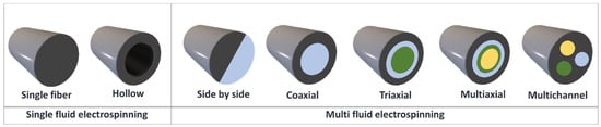 The cross-sections of fibers generated using the various electrospinning approaches.