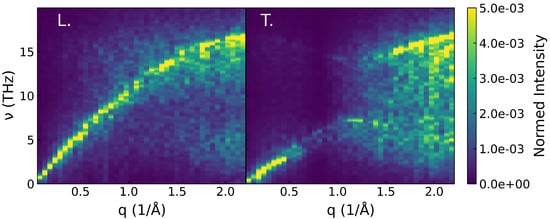 with the inverse lifetime, the phonon dispersion, A the amplitude and labeling either the longitudinal or transverse polarization. The parameters of Equation (A1) are fitted to match the DSF obtained with Equation (12) for every wave vector. This fit is realized on the DSF convoluted with the experimental resolution [4]. Thus, this model enables the computation of both the lifetime and the dispersion relation using the DSF only.