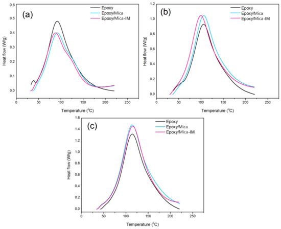 - Bajaj, P.; Jha, N.; Kumar, R.A. Effect of mica on the curing behavior of an amine-cured epoxy system: Differential scanning calorimetric studies. J. Appl. Polym. Sci. 1990, 40, 203–212. [Google Scholar] [CrossRef]