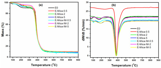 | Sample | T5 (°C) | TP (°C) | Residue (%) at 900 °C |