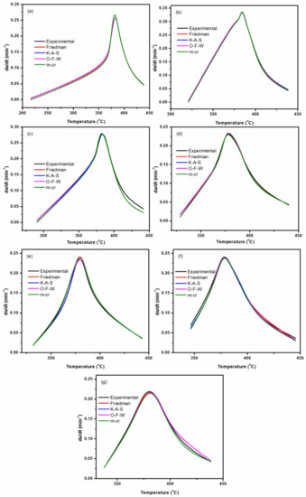 - Vyazovkin, S.; Burnham, A.K.; Criado, J.M.; Pérez-Maqueda, L.A.; Popescu, C.; Sbirrazzuoli, N. ICTAC Kinetics Committee recommendations for performing kinetic computations on thermal analysis data. Thermochim. Acta 2011, 520, 1–19. [Google Scholar] [CrossRef]