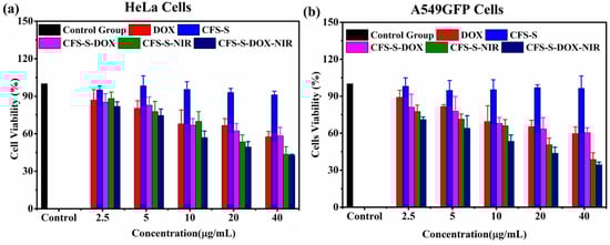 15]. Finally, the cell viability of HeLa and A549GFP cells treated with 40 µg/mL of CFS-S-DOX and an 808 nm laser (1 W/cm