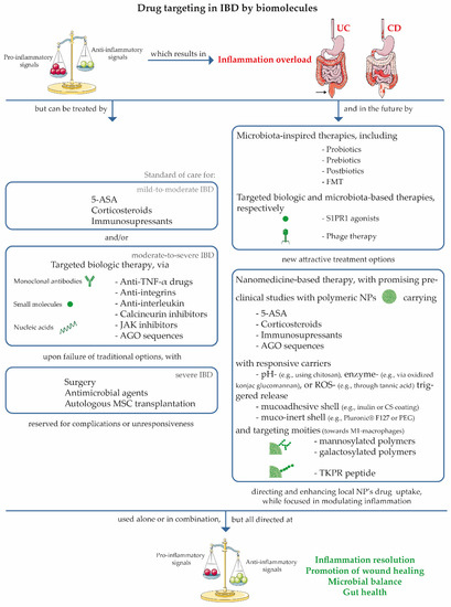 - Giron, F.; Pastó, A.; Tasciotti, E.; Abraham, B. Nanotechnology in the Treatment of Inflammatory Bowel Disease. Inflamm. Bowel Dis. 2019, 25, 1871–1880. [Google Scholar] [CrossRef] [PubMed] [Green Version]