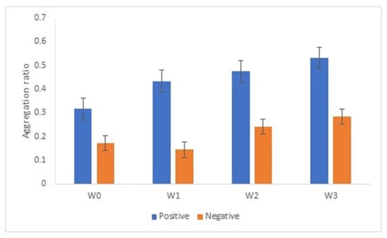 AuNPs’ aggregation ratio in the presence of positive and negative serum samples after 1 week (W1), 2 weeks (W2) and 3 weeks (W3) of storage at 4 °C.